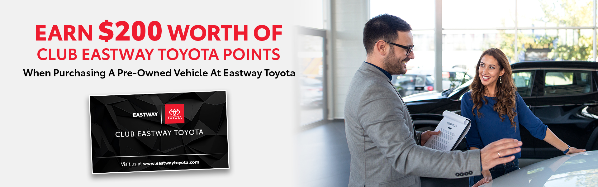 Answer: At Eastway Toyota, we combine the dependability of Toyota vehicles with a customer-focused approach. Our team is committed to honesty, transparency, and building lasting relationships — whether you’re buying your first car or returning for regular maintenance.